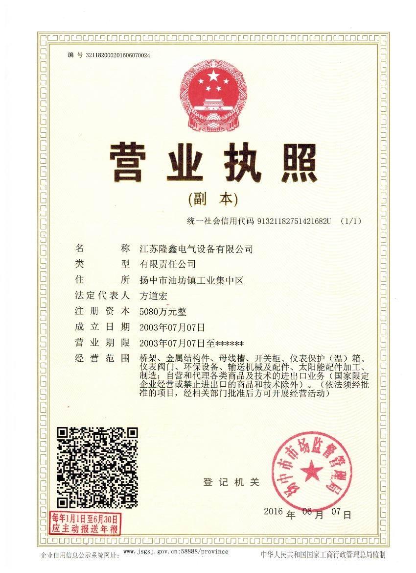 江蘇隆鑫電氣設備有限公司(原揚中市隆鑫電器設備有限公司)位于風景秀麗的江南古城 ---- 鎮(zhèn)江東部揚子江畔,水陸交通便利。 本公司是中石化網(wǎng)絡成員企業(yè),是揚中橋架企業(yè),工業(yè)管道閥門、儀表管配件、母線槽、匯線橋架、玻璃鋼制品的專業(yè)生產(chǎn)廠家。 我公司一貫以經(jīng)營以管理為保證、以科技進步為動力,使產(chǎn)品的市場占有率不斷提高,公司正持續(xù)、穩(wěn)步、健康地向前發(fā)展,秉循“創(chuàng)造完美、服務用戶、奉獻社會”的經(jīng)營觀念,本公司生產(chǎn)的儀表管件及閥門系列產(chǎn)品、母線槽、電纜橋架幾乎覆蓋全國31個省、市、自治區(qū)的化工、冶金、交通、輕...